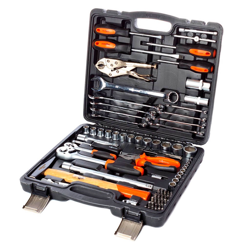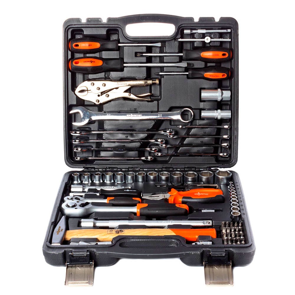 Удлинитель, Трещотка, Свечные головки, Вороток, Ключ гаечный, Отвертки, Молоток, Магнит с телескопической ручкой, Торцевые головки, Биты, Пассатижи, Адаптер, Клещи, Карданный шарнир |