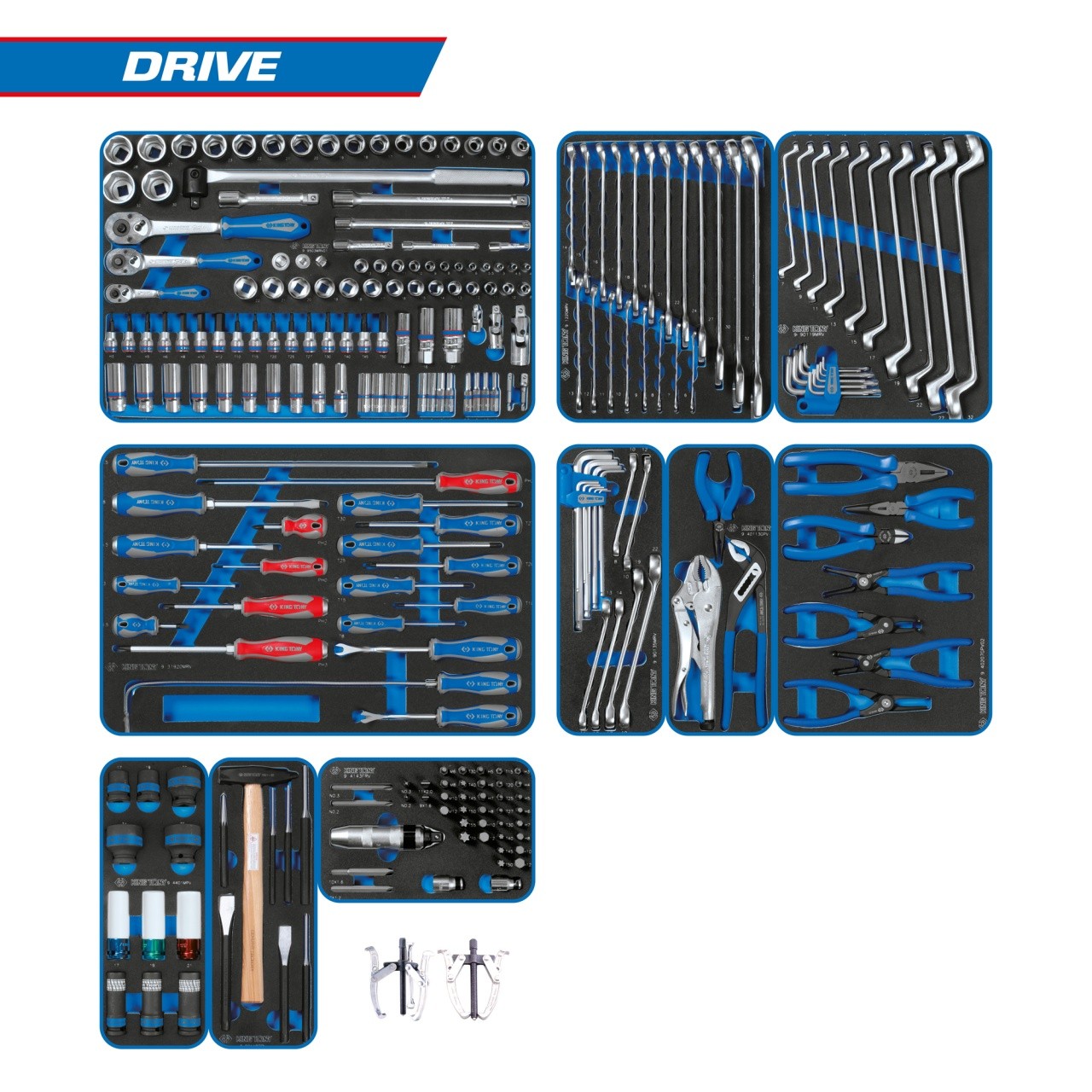 Набор инструментов "DRIVE" для тележки, 10 ложементов, 251 предмет KING TONY 934-251MRVD