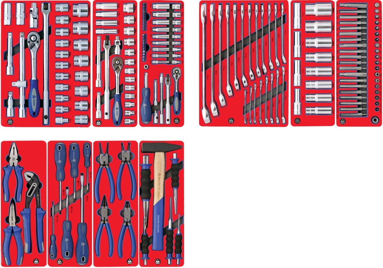 Набор инструментов "СТАНДАРТ" для тележки, 10 ложементов, 186 предметов МАСТАК 5-00186