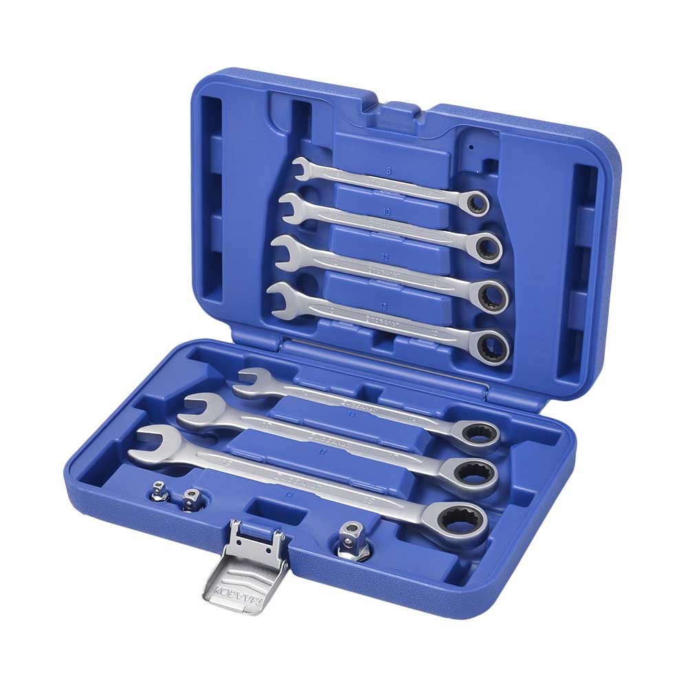 Набор комбинированных трещоточных ключей Кобальт + переходники 1/4", 3/8", 1/2" 10 предметов в кейсе 791189-10