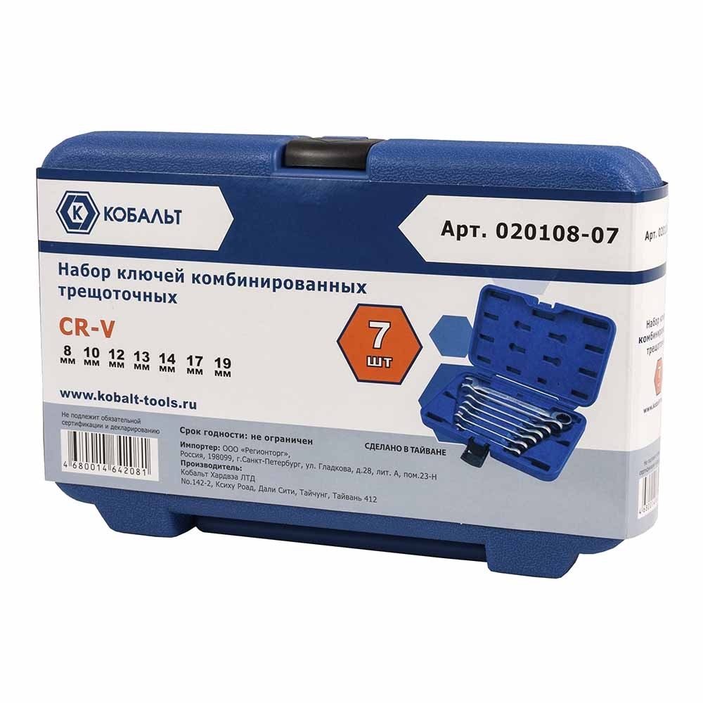 Набор комбинированных трещоточных ключей Кобальт 7шт в кейсе 020108-07