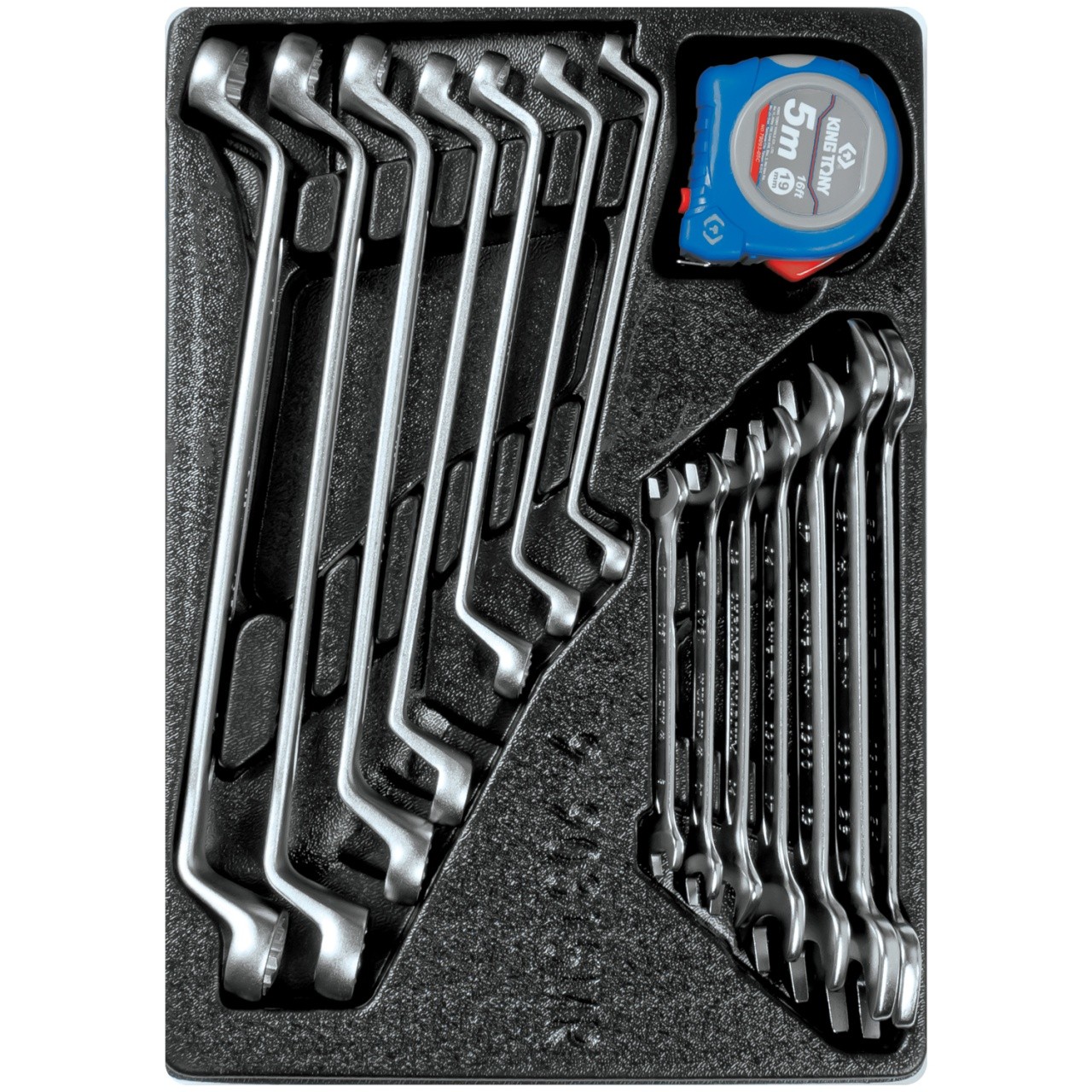 Набор накидных и рожковых ключей, рулетка, ложемент, 15 предметов KING TONY 9-90315MR