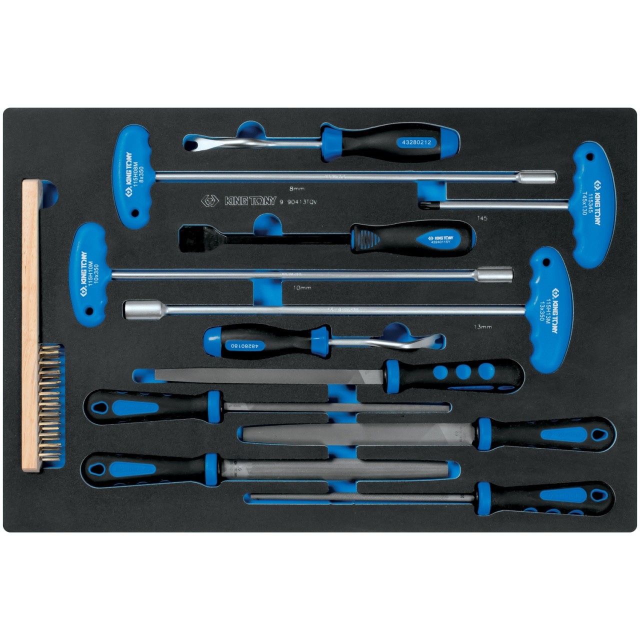 Набор напильников, ключей торцевых Т-типа, съемники клипс и металлическая щетка, ложемент, 13 предме