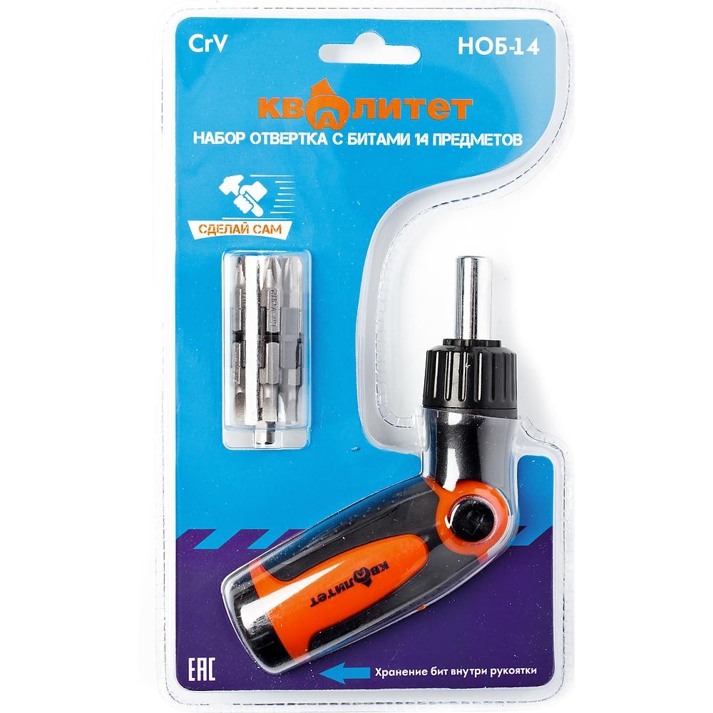 Набор отвертка с битами Квалитет "Сделай сам" 14 предметов НОБ-14