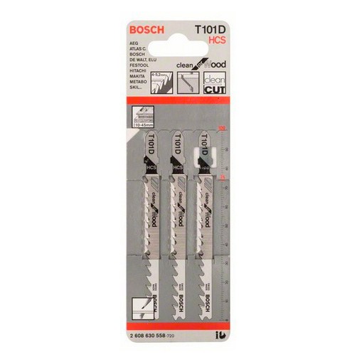Набор пилок для лобзика по дереву Bosch T101D HCS 100мм 3шт (558)