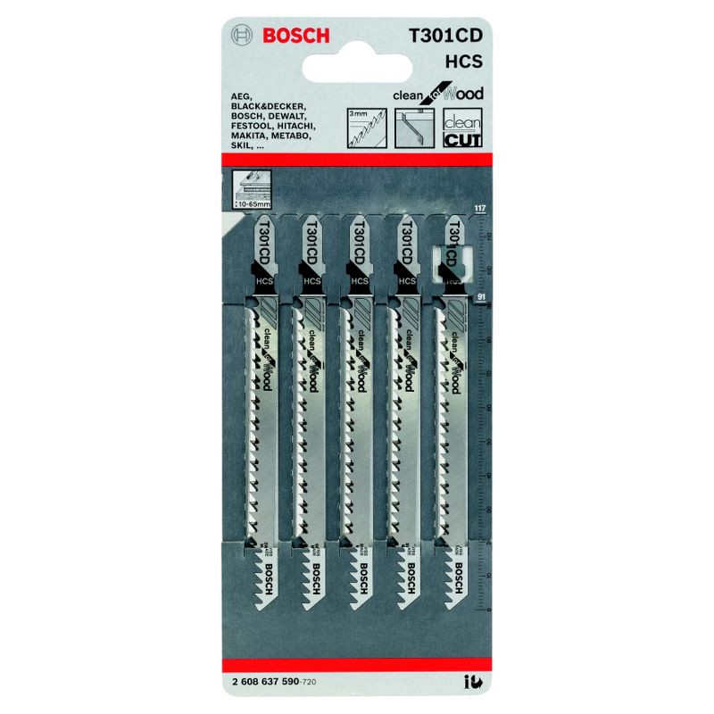 Набор пилок для лобзика по дереву Bosch T301CD 117мм 5шт (590)