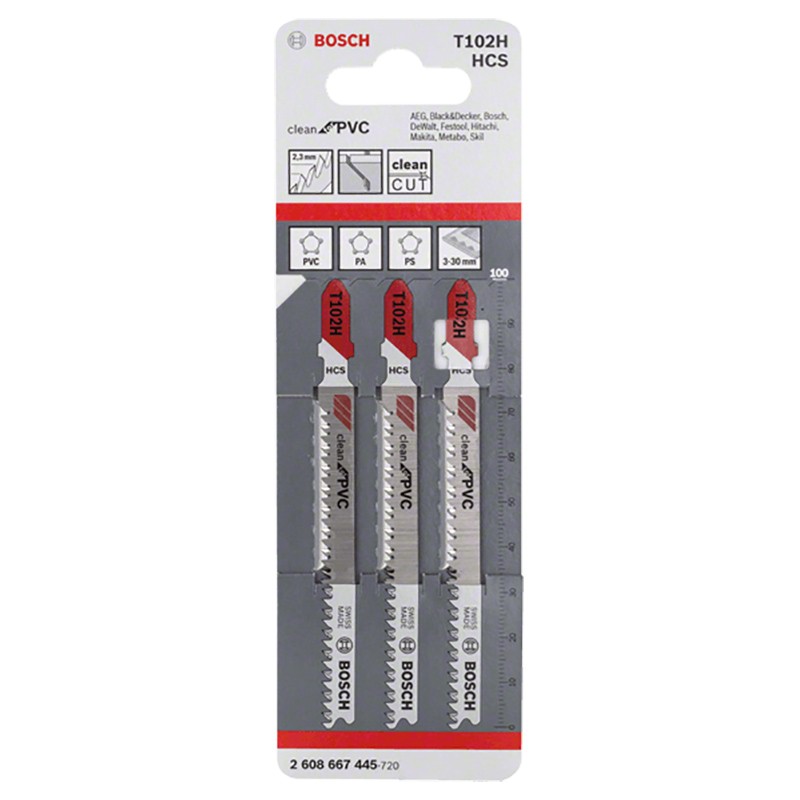 Набор пилок для лобзика по ПВХ Bosch T102H CleanPVC 100мм 3шт (445)