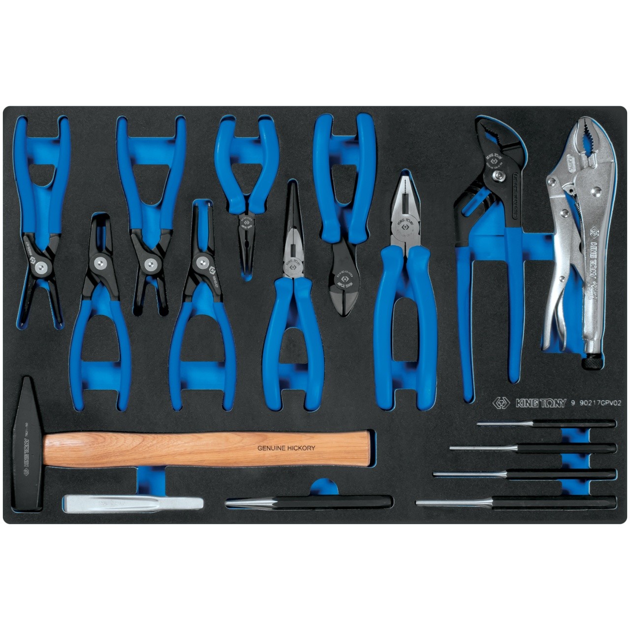 Набор съемников стопорных колец, молоток, выколотки, ложемент, 17 предметов KING TONY 9-90217GRV02