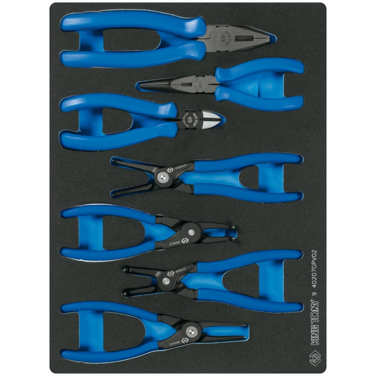 Набор съемников стопорных колец, пассатижей и бокорезов, ложемент, 7 предметов KING TONY 9-40207GPV0