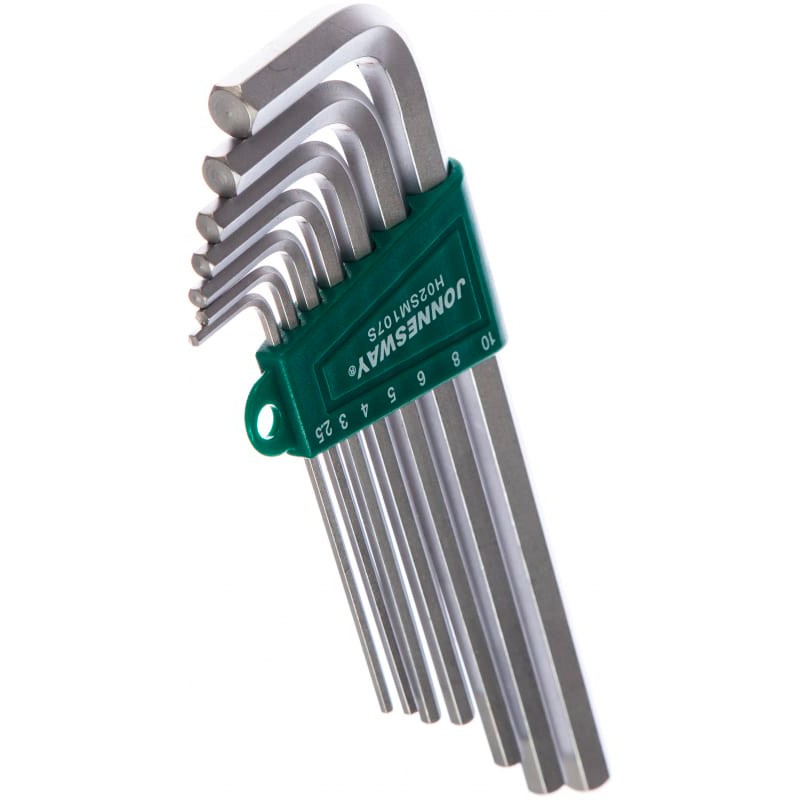 <div class="catalog-product-attributes__white-gradient"></div> Набор шестигранных ключей Jonnesway LONG 7шт H02SM107S изготовлен из стали S2 и имеет матовое хромоникелевое покрытие. Предназначен для работ с крепежом шестигранного внутреннего сечения.. В набор входят 7 угловых шестигранников HEX с размерами: 2.5мм, 3мм, 4мм, 5мм, 6мм, 8мм, 10мм. |