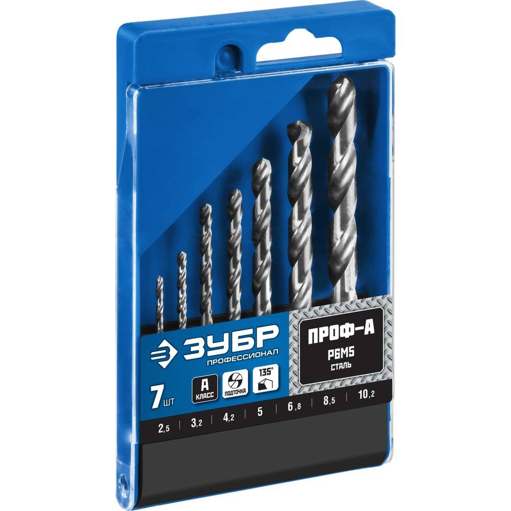 Набор сверл по металлу ЗУБР ПРОФ-А 2.5-10.2 мм 7 шт (29625-H7R)