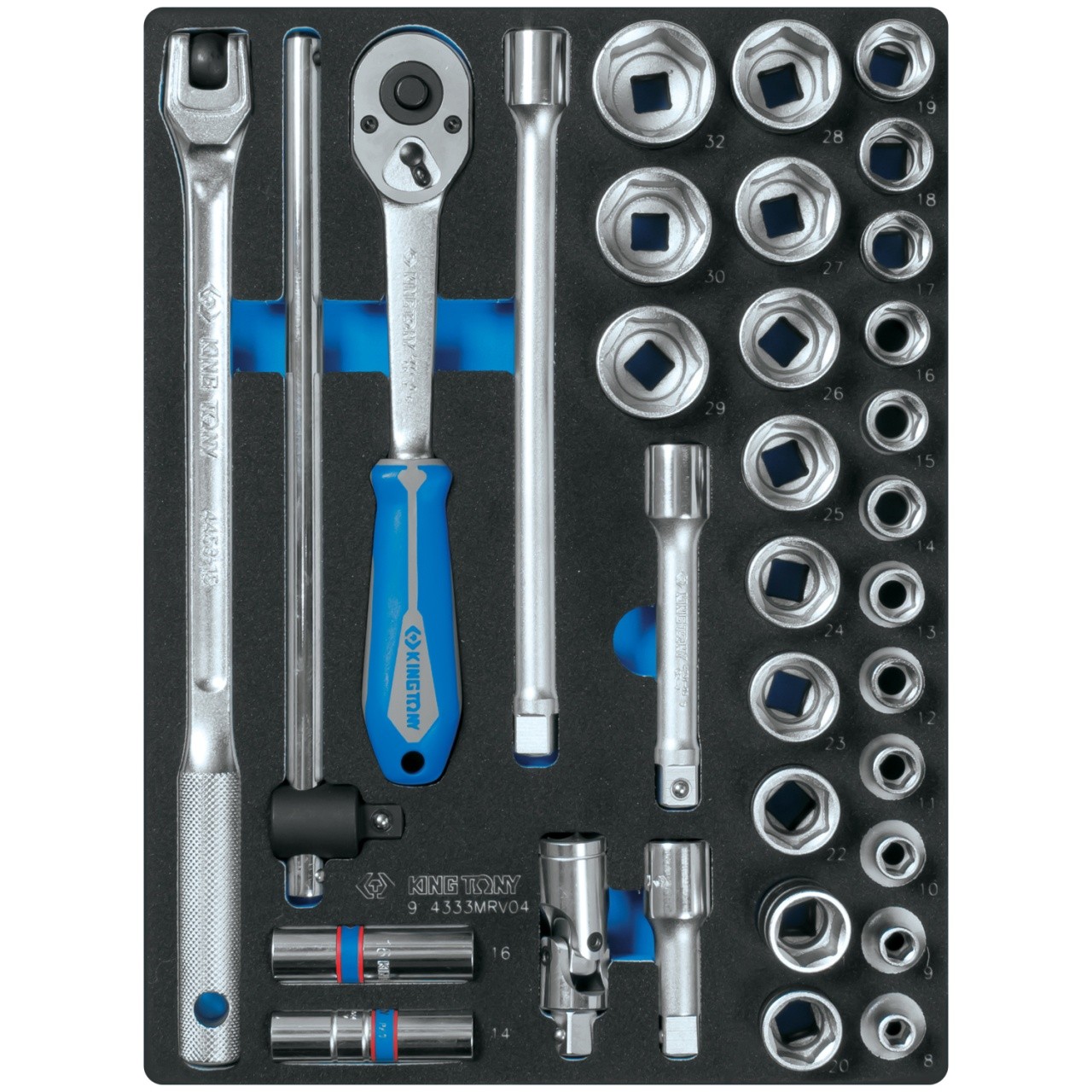 Набор торцевых головок 1/2" с принадлежностями, шестигранные, ложемент, 33 предмета KING TONY 9-4333