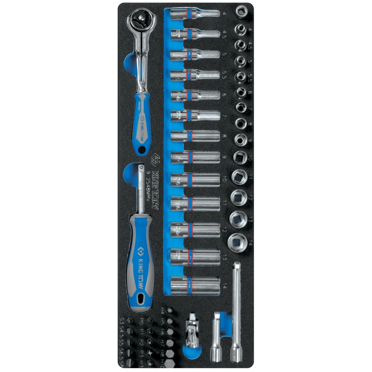 Набор торцевых головок 1/4" с принадлежностями, ложемент, 48 предметов KING TONY 9-2548MRV