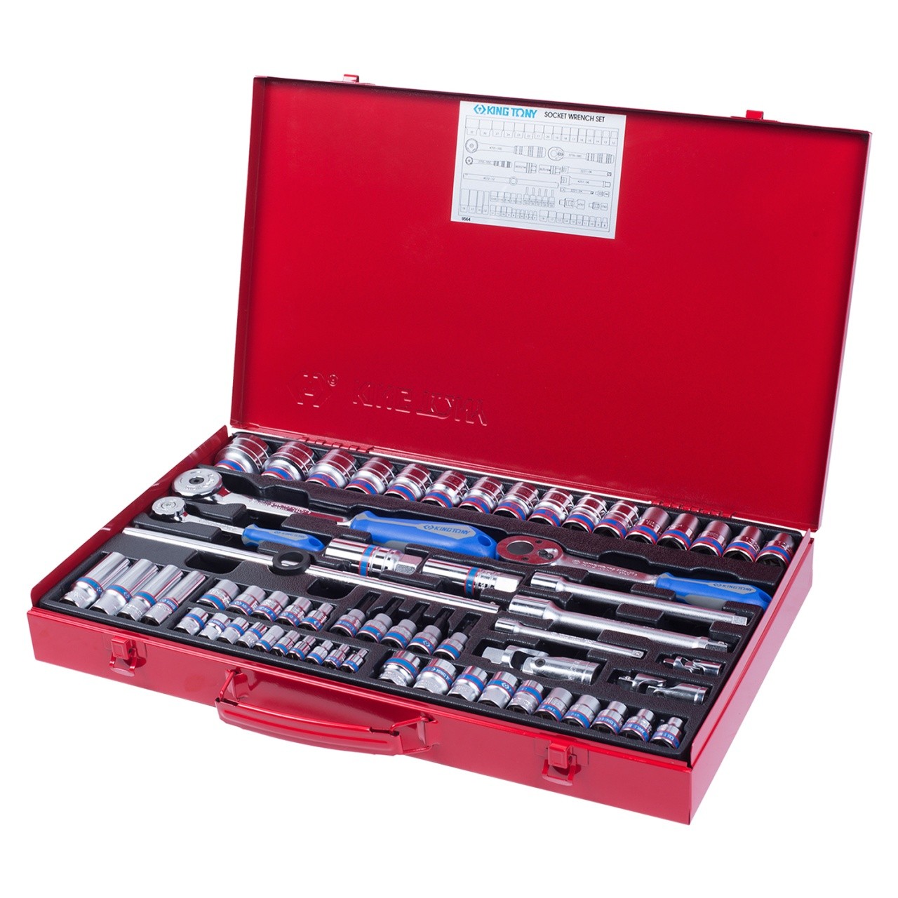 Набор торцевых головок с принадлежностями 1/4", 3/8", 1/2", 6-гранные, 4-32 мм, 62 предмета KING TONY