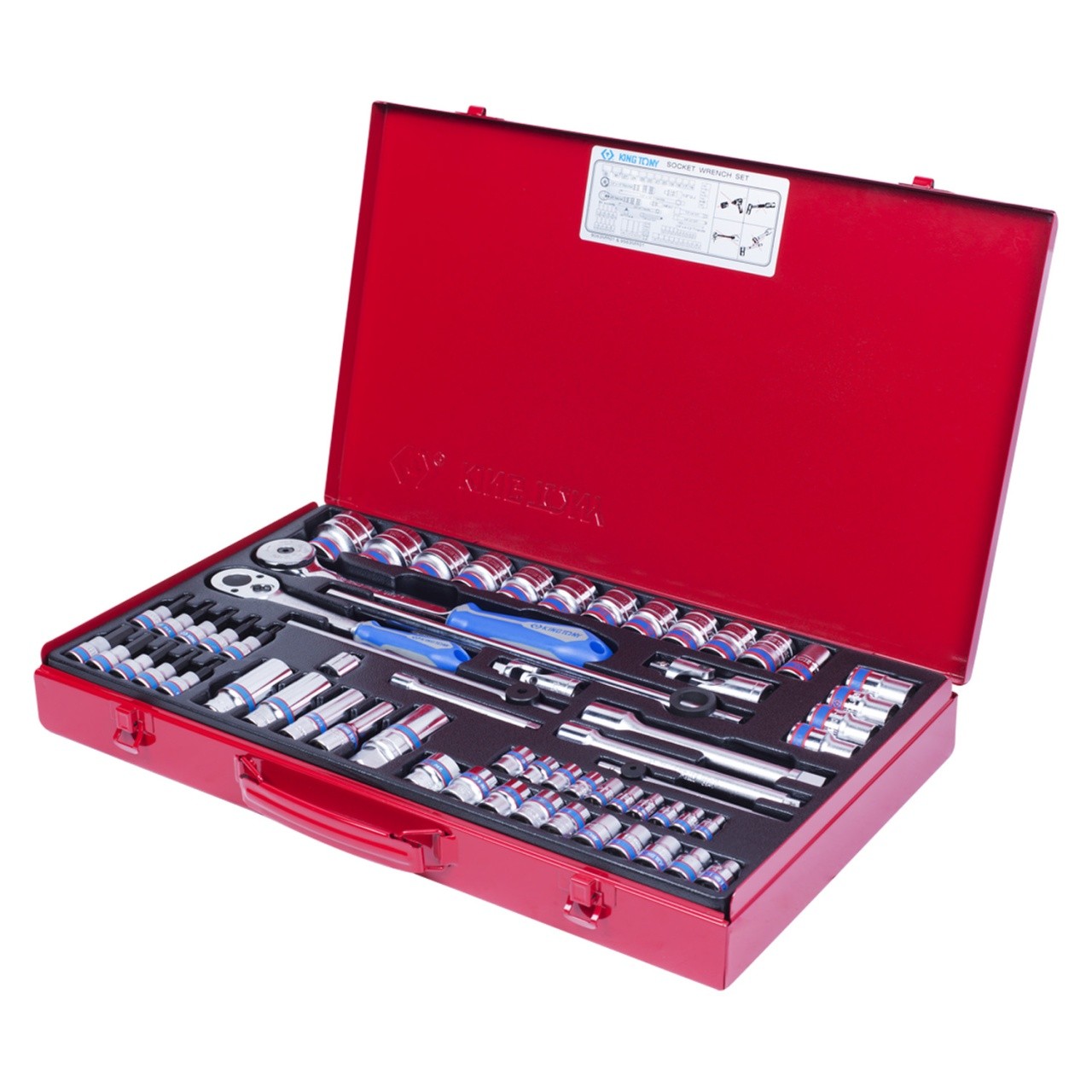 Набор торцевых головок с принадлежностями 1/4", 3/8", 1/2", двенадцатигранные, 4-32 мм, 62 предмета