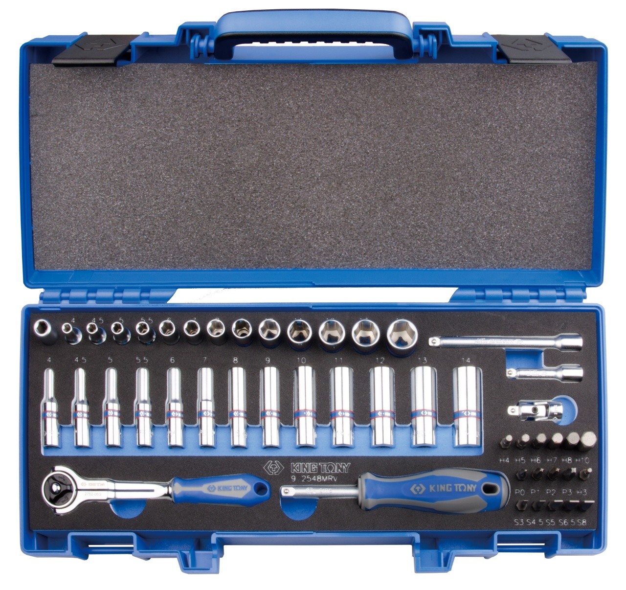 Набор торцевых головок с принадлежностями 1/4", шестигранные, 4-14 мм, 48 предметов KING TONY 2548MR