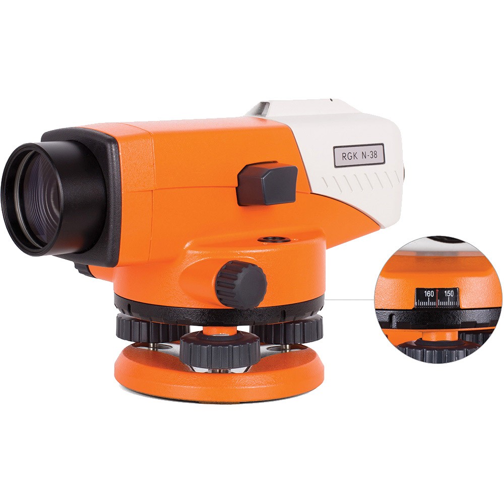 <div class="catalog-product-attributes__white-gradient"></div> RGK N-38 – оптический нивелир, со средней квадратической ошибкой на километр двойного хода 0,7 мм – этой точности будет достаточно для проведения работ, требующих повышенной точности, включая нивелирование III и IV класса, маркшейдерские, строительные и многие другие задачи. Оптическая система обеспечивает прямое изображение с увеличением в 38 раз, а минимальное фокусное расстояние составляет 30 см. Прибор подходит для работы на любых объектах – от строительных площадок до тоннелей и шахт, как на больших, так и на малых дистанциях. Высокая точность оптики нивелира усилена использованием компенсатора с магнитным демпфером. Система компенсации устраняет отклонение по горизонтали в пределах 15’ с точностью 0,2’, благодаря чему RGK N-38 обеспечивает стабильное изображение в зрительной трубе. Для первоначальной установки нивелира в горизонтальное положение используются плавные наводящие винты, а контроль горизонта производится с помощью встроенного пуз |