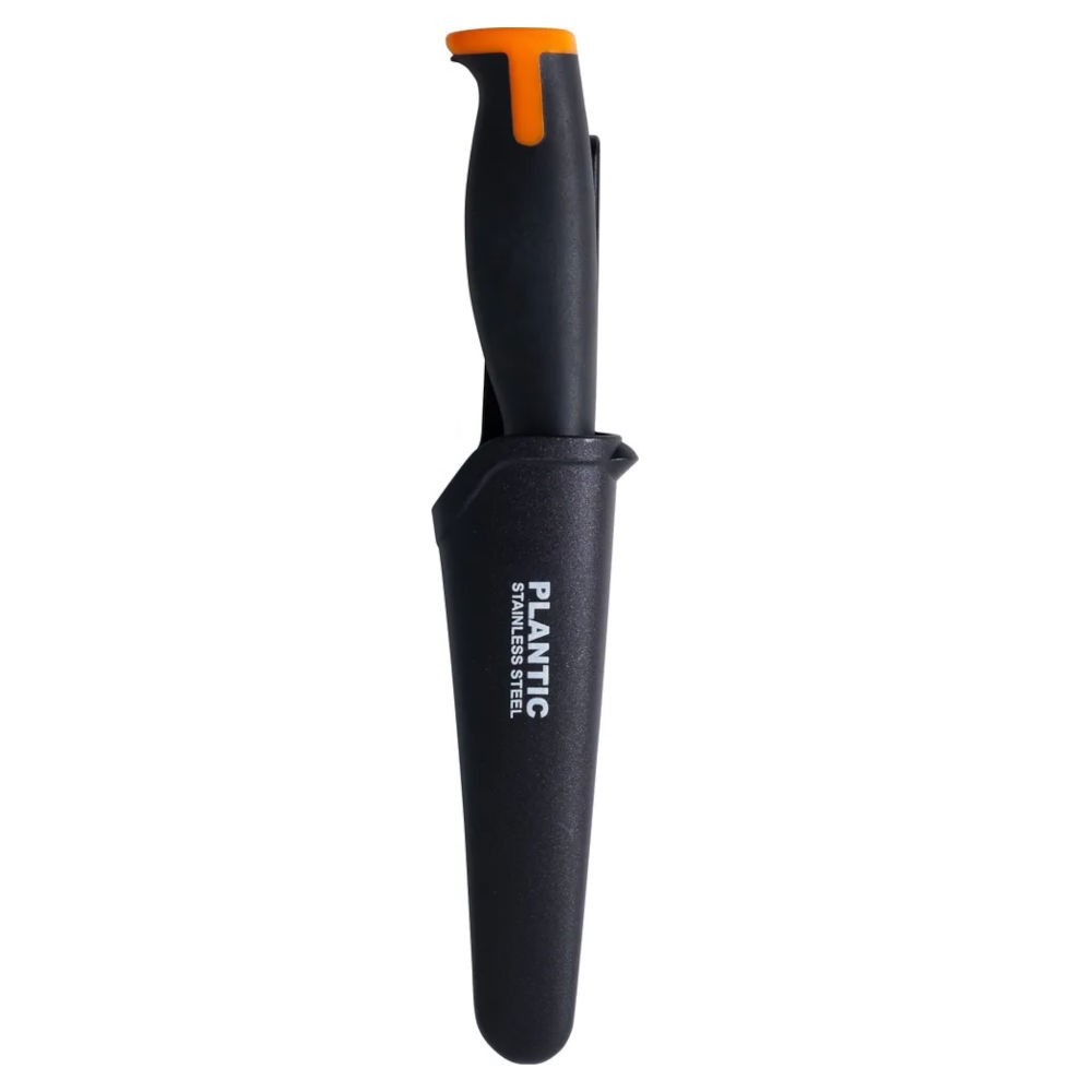 <div class="catalog-product-attributes__white-gradient"></div> Нож универсальный Plantic 27401-01 с пластиковыми ножнами подходит для резки различных материалов, а также для подрезки цветов и растений. Лезвие изготовлено из нержавеющей стали, пластиковая рукоятка прорезинена в области хвата. |