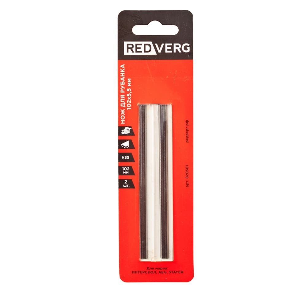 Ножи для рубанка REDVERG 102х5.5мм быстрорежущая сталь 2шт (820581)