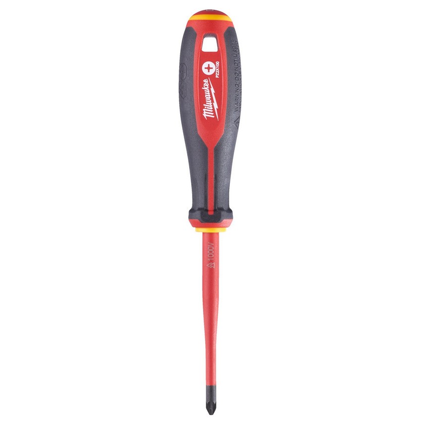 Отвертка диэлектрическая Milwaukee VDE PZ2X100мм (726) протестирована по стандарту VDE напряжением 10кВ и предназначена для работы в электроустановках под напряжением 1кВ.