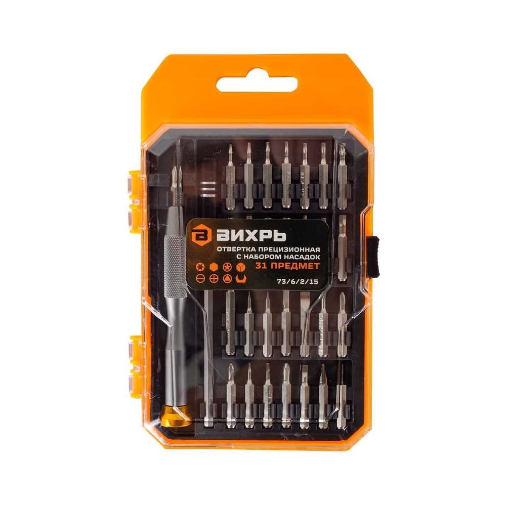 Отвертка прецизионная с набором насадок, 31 предмет в кейсе Вихрь