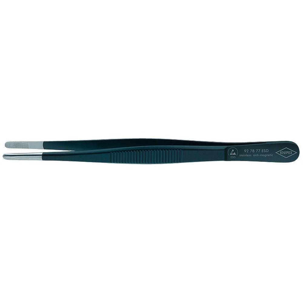 Пинцет универсальный ESD, нерж, 145 мм, зазубренные прямые тупые губки