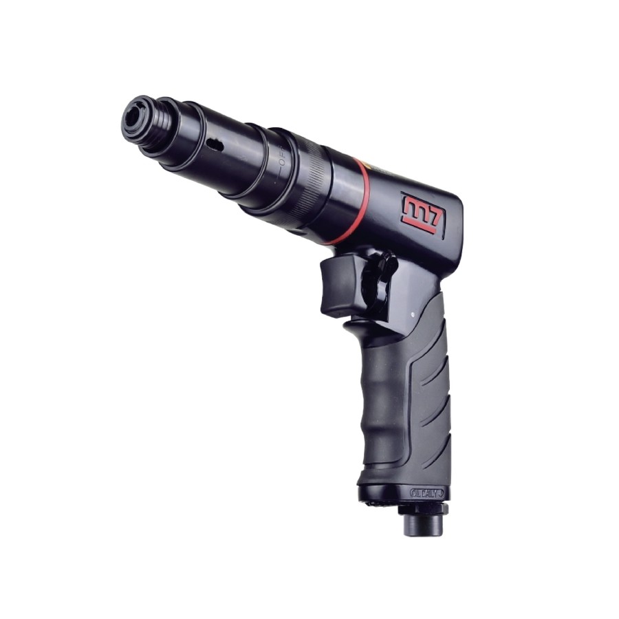 Технические характеристики Тип патрона быстрозажимной для вставок (бит) с хвостовиком HEX 1/4" для шуруповерта Скорость вращения 2100 об/мин Крутящий момент от 5 до 14 Нм Рабочее давление 6,3 бар Средний расход воздуха 113 л/мин Резьба на входе F1/4" NPT Рекомендованное сечение шланга 10 мм Длина по оси 195 мм Уровень шума 90,0 дБ Вибрация 4,2 м/с2 Материалы сталь, алюминий, TPR (антивибрационная накладка на рукояти) Упаковка картонный короб Размеры в упаковке 245 х 172 х 53 мм Вес 1,18 кг Особенности • Регулируемый крутящий момент • Переключение реверса в районе курка • Композитные материалы корпуса • Высокая эргономика и защита от вибрации Для регулировки крутящего момента 1. Открутите корпус. 2. Вставьте в патрон шестигранник (в комплекте). 3. Для увеличения крутящего момента ключом на 17 затяните пружину, для уменьшения ослабьте. 4. При необходимости смажьте детали механизма. 5. Установите корпус.