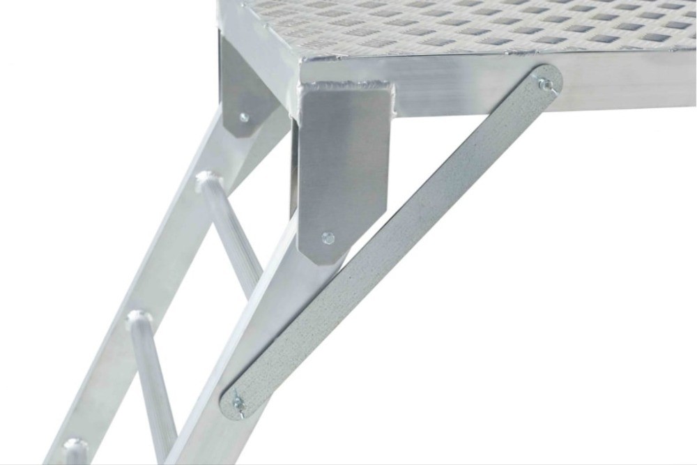 Легкий вес Максимальная нагрузка 150 кг Складная конструкция Двухсторонний подъем Нескользящая рабочая площадка из рифленого листа «квинтет» |