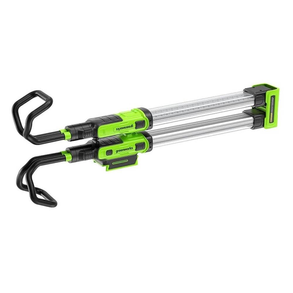 Прожектор светодиодный аккумуляторный Greenworks 24В LED- G24UHL (без акк;без з/у) - это устройство представляет собой LED-прожектор, работающий от батарей 24V, с регулируемой длиной, с поворотными крюками, оснащенными защитой от царапин. Устройство предназначено для освещения рабочих зон. Крюки с защитой от царапин используются для фиксации LED-прожектора в подкапотном пространстве автомобиля, в гараже или в мастерской. Устройство работает от всех аккумуляторных батарей платформы Greenworks POWERALL 24V.
