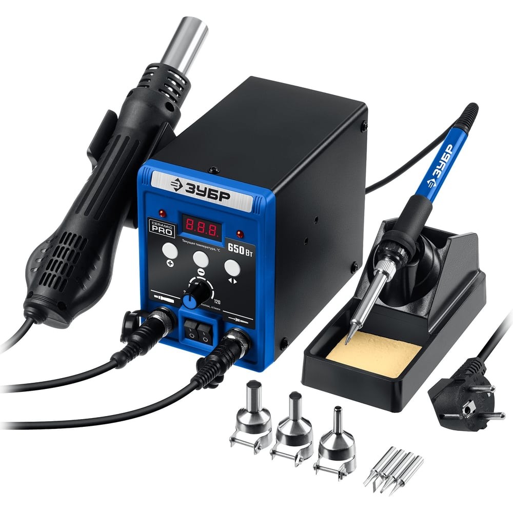 ПСР-650, 100 - 500°С, 650 Вт, 2 в 1, ремонтная паяльная станция, Профессионал (55427)