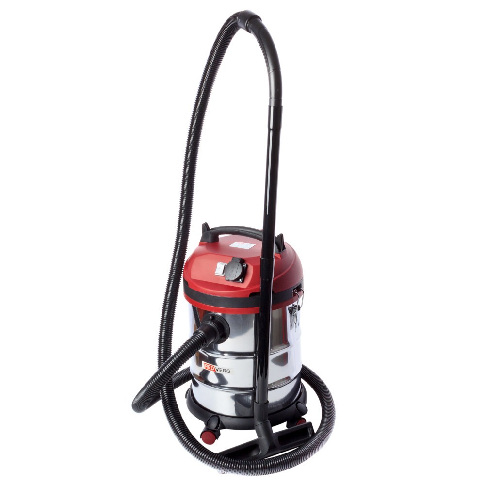 Мощный двигатель Розетка для подключения электроинструмента Удобный 3-х позиционный выключатель Нера-фильтр Возможность сбора жидкости Бак из нержавеющей стали Длинный сетевой кабель Удобные поворотные транспортировочные колёса |