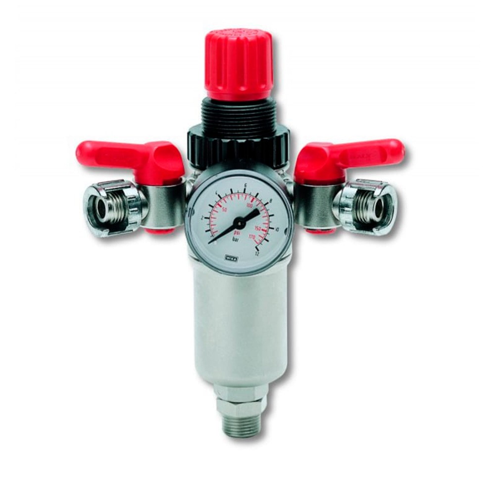 Регулятор давления с манометром и фильтром Remeza RPF-188 1/2"M + 2 крана