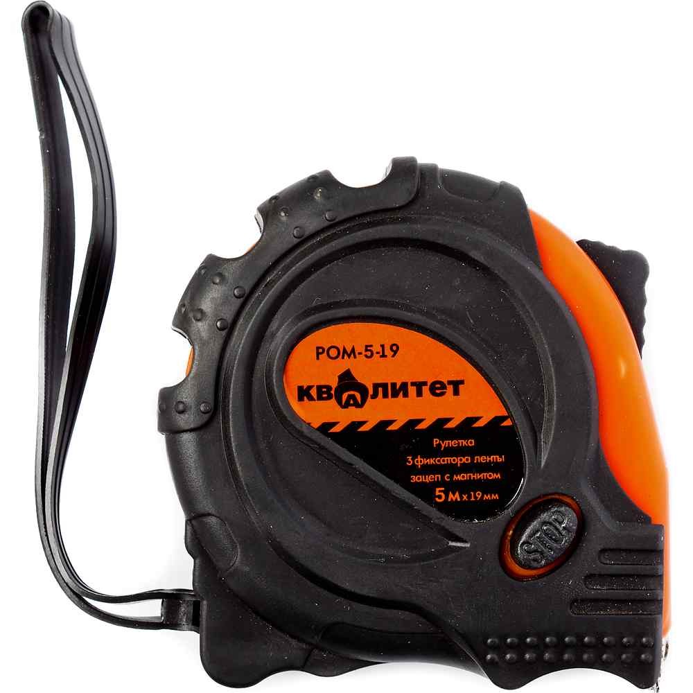 Рулетка измерительная Квалитет 5м х 19мм с 3 фиксаторами магнитная РОМ-5-19