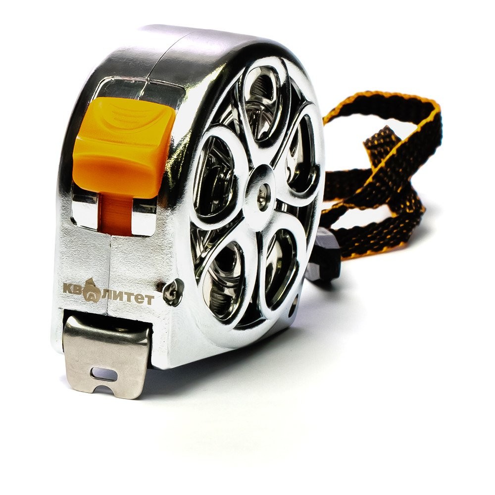Рулетка измерительная Квалитет 5м х 19мм с фиксатором РН-5-19 - простая, надёжная рулетка, имеет чёткую, хорошо читаемую измерительную шкалу и классическую систему постоянной фиксации переключателем спереди. Двухсторонняя шкала позволит использовать любую сторону ленты для замеров, что особенно актуально при определении диаметра объекта. Корпус и полотно из нержавеющей стали продлит срок службы инструмента.