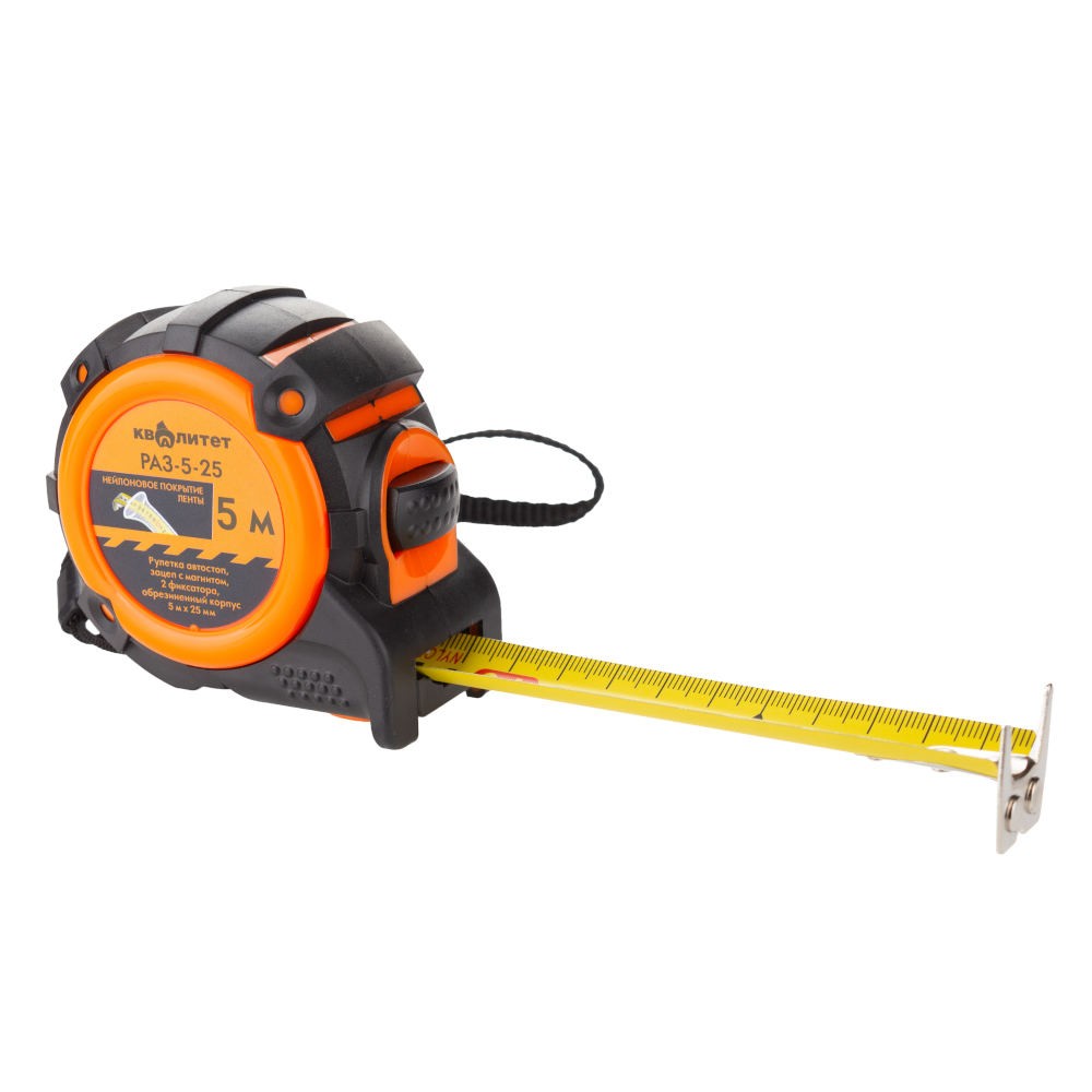 Рулетка измерительная Квалитет 5м х 25мм с двумя фиксаторами магнитная РАЗ-5-25