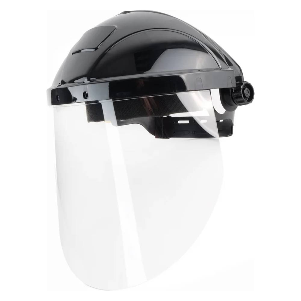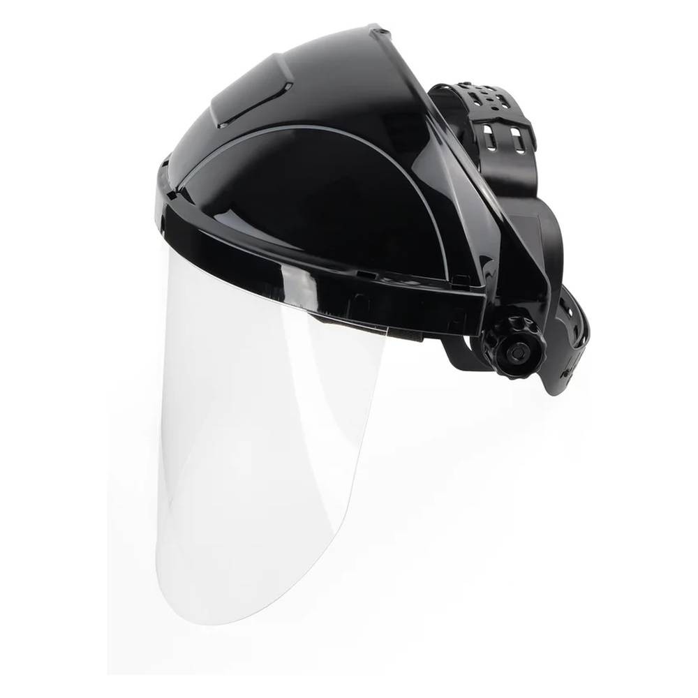 Экран из поликарбоната Ударопрочность и термостойкость Скошенная книзу форма Оптический класс 1 Козырёк увеличенного размера Регулировка по высоте и обхвату головы Сменный налобный обтюратор |