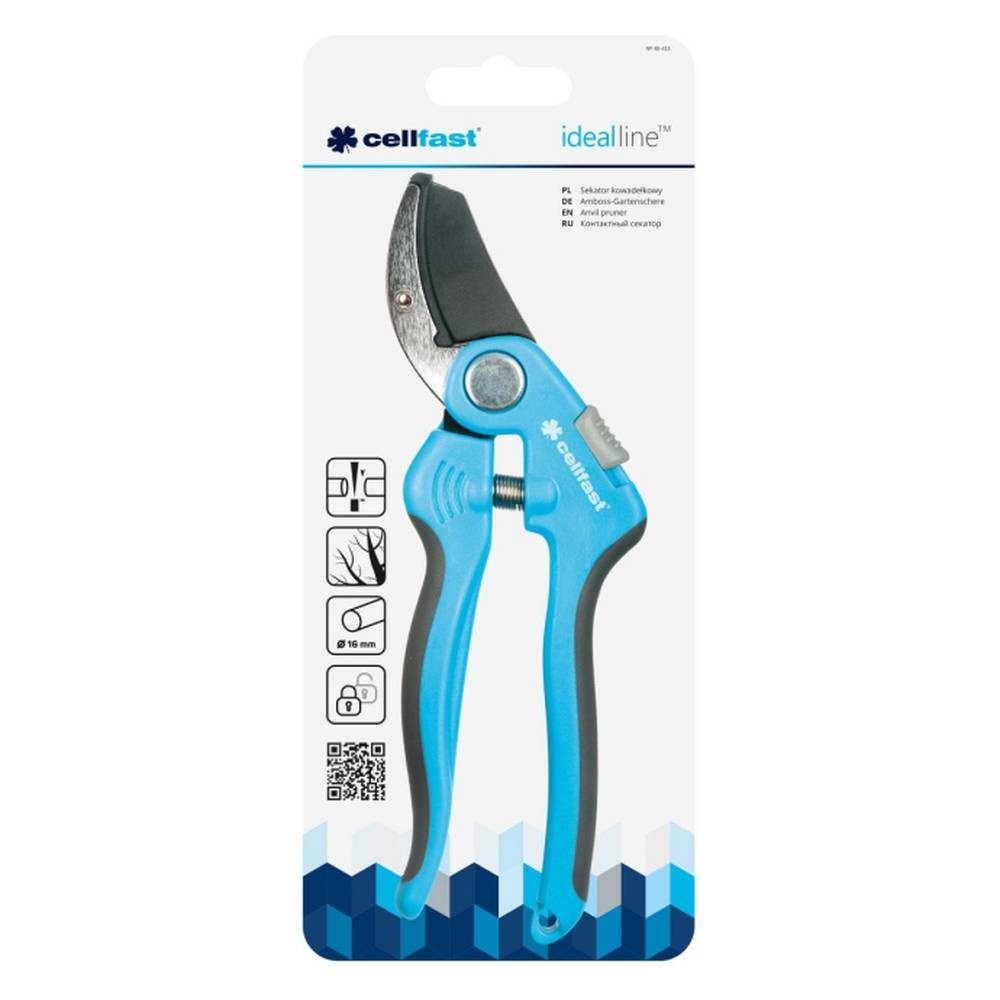 Секатор Cellfast IDEAL (40-415) - это универсальный одноручный контактный секатор предназначен для резки сухих ветвей. Максимальный диаметр резки - 16мм. Ручки покрыты поверхностью SAFETOUCH™, которая обеспечивает надежный захват и удобство эксплуатации. Блокировка открытия обеспечивает безопасность при эксплуатации. Лезвие с антиналипающим покрытием. Пружина из нержавеющей стали.