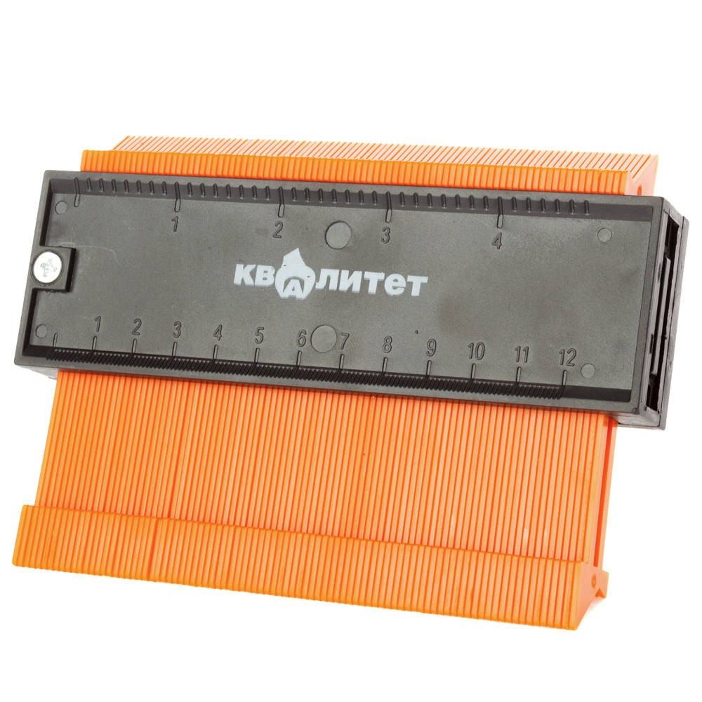 Шаблон контурный Квалитет 120мм ШФ-120 относится к современным универсальным измерительным приборам, которые способны не только сообщать фактические физические характеристики, но и моделировать криволинейную поверхность. Например при копировании и переносе контуров различных форм при точной подрезке материалов, при обходе труб водо- и газоснабжения, углов и любых других рельефных поверхностей. Изделие изготовлено из полимерных материалов, используется для работы с плиткой и другими видами поверхностей. Оно позволяет воссоздавать контур (учитывая выпуклые и углубленные особенности). Механизм работы устройства прост: следует прижать зубья шаблона к поверхности, и выдвижные пластиковые пластины зафиксируют на себе все изъяны/изгибы криволинейной поверхности. Остается лишь перенести рельеф на плитку, ламинат, линолеум, гипрок или любой другой материал для резки.