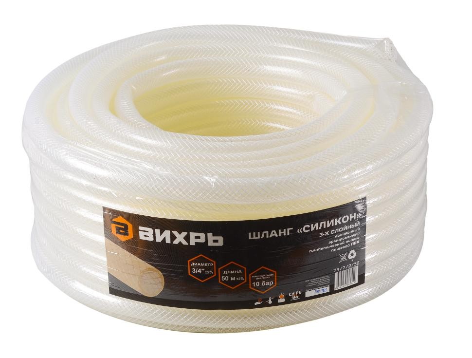 Шланг поливочный Вихрь "Силикон" трёхслойный армированный 3/4", 50м (прозрачный)
