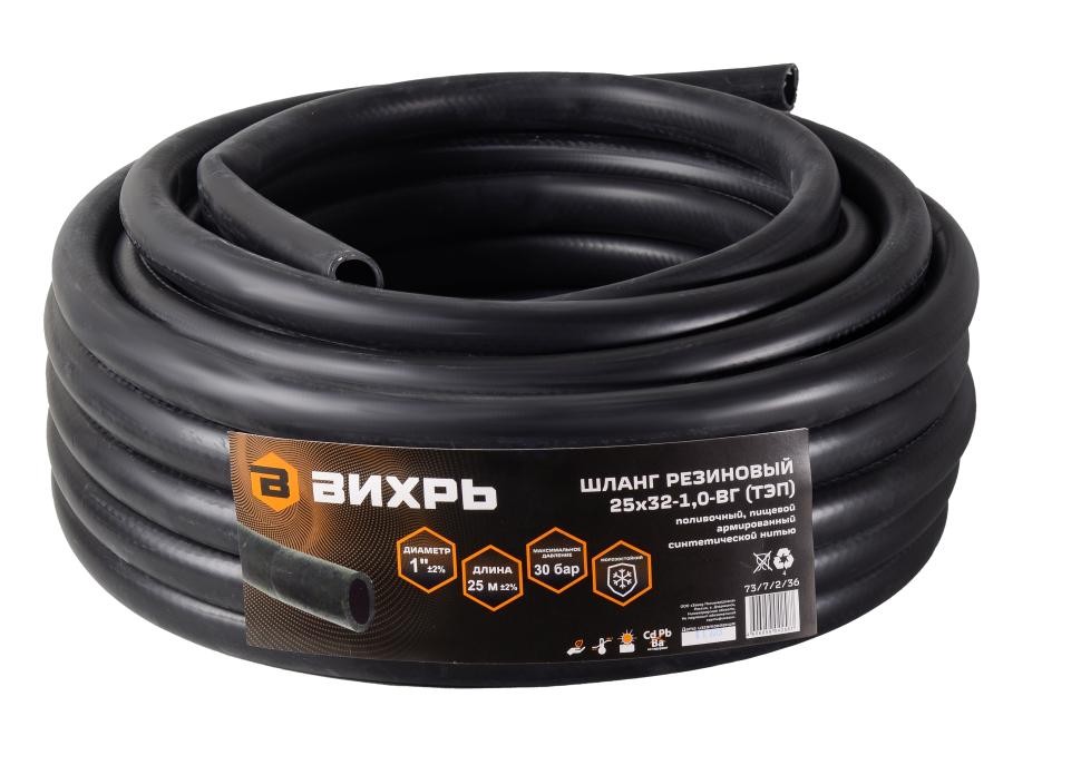 Шланг резиновый армированный, 25х32-1,0-ВГ., бухта 25м (чёрный) ТЭП Вихрь