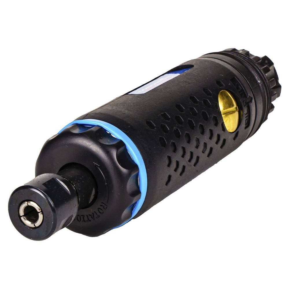 Надёжный пневмодвигатель Широкая клавиша пуска Защита от повторного пуска Композитный корпус Высокая скорость (22000об/мин) Прецизионная цанга Диаметр воздушного штуцера 1/4"F Надежная фиксация хвостовика Компактные размеры и малый вес Резиновая накладка на рукоятке |