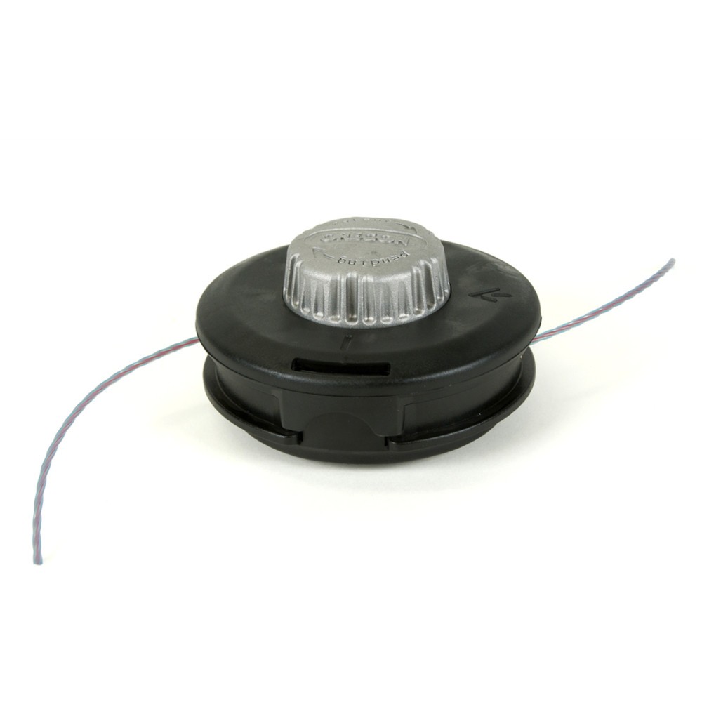 Прочный корпус из технополимера Металлическая кнопка Износостойкие латунные проушины для лески Быстрая облегченная намотка лески без разбора головки Разбирается один раз при установке на триммер Полуавтоматическая подача лески Tap&Go |
