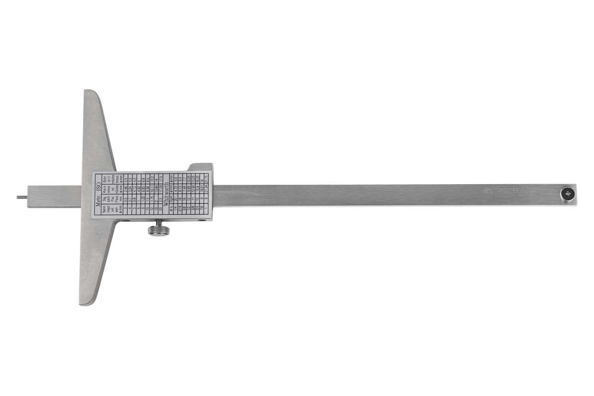 Штангенглубиномер называется SCGM-150, где SC означает - штангенциркуль, G - глубиномер, M - механический, а 150 - это максимальное значение измерений в мм.