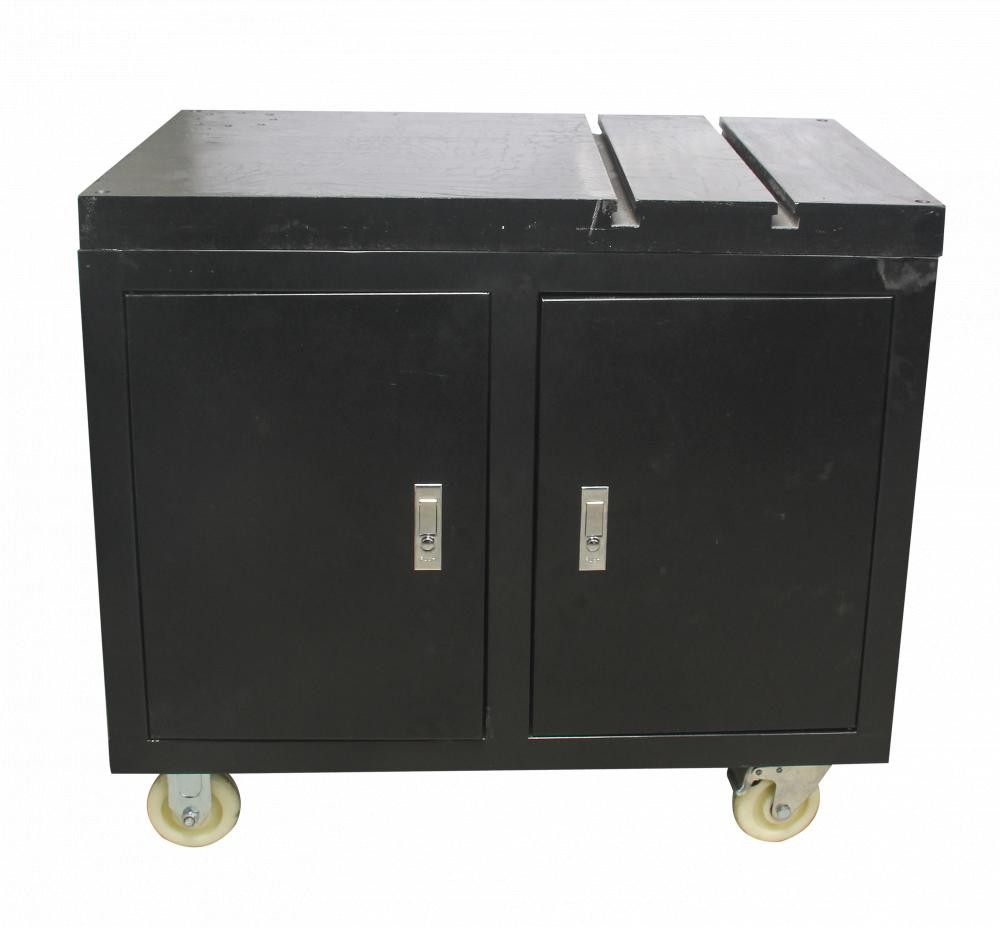 Стол оснащен металлической столешницей с 2-мя Т-образными пазами для крепления обрабатываемой детали, оснастки или тисков. Стол оснащен колесами с надежным фиксатором положения.