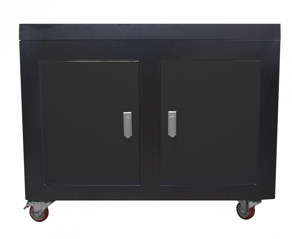 Стол оснащен металлической столешницей с 3-мя Т-образными пазами для крепления обрабатываемой детали, оснастки или тисков. Стол оснащен колесами с надежным фиксатором положения.