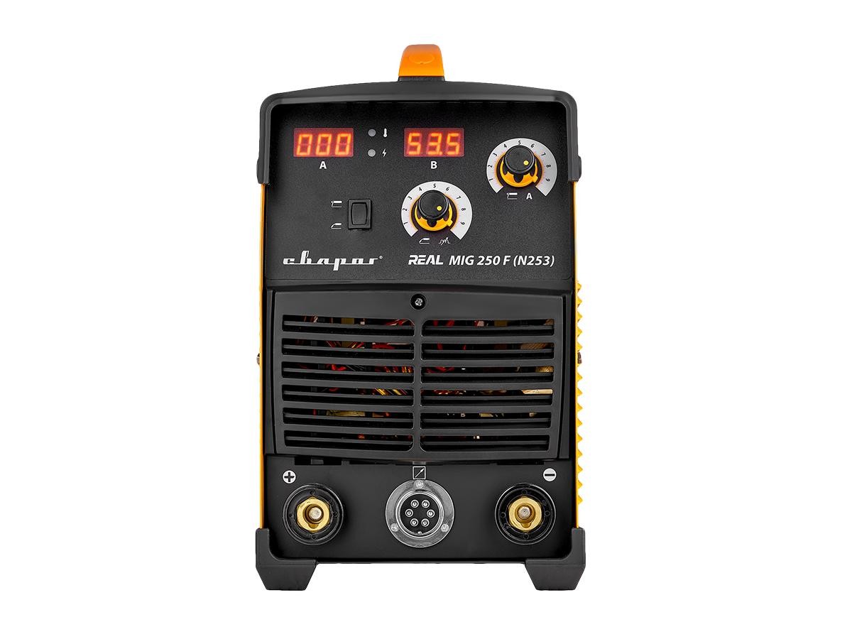 REAL MIG 250F (N253)— инверторный сварочный аппарат для полуавтоматической сварки в среде защитных газов (MIG/MAG), сварки порошковой проволокой (FCAW), а также ручной дуговой сварки покрытым электродом (ММА).