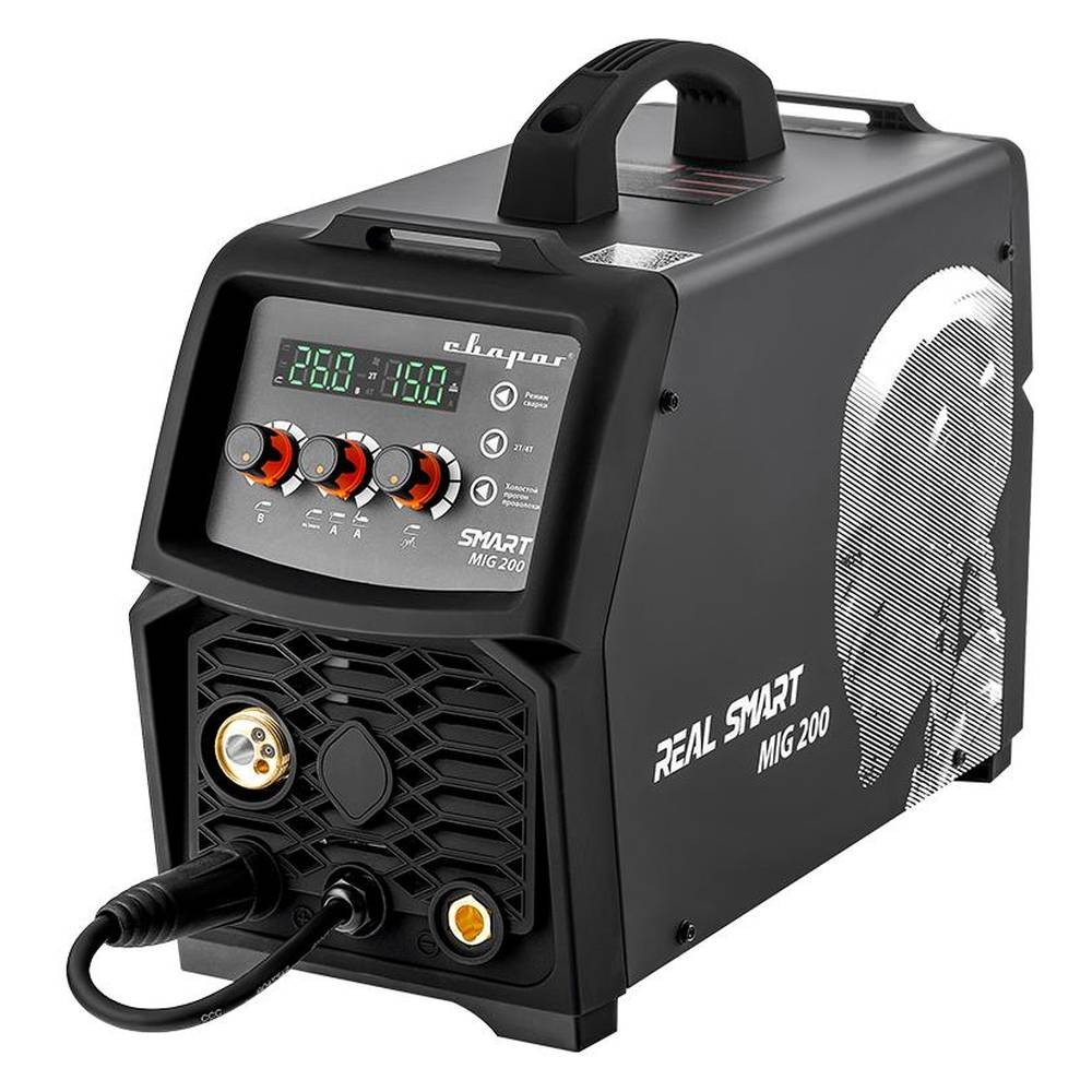 REAL SMART MIG 200 BLACK — универсальный, многофункциональный аппарат, предназначенный для полуавтоматической сварки сплошными и порошковыми проволоками (MIG/MAG), для ручной дуговой сварки покрытыми электродами (MMA), а также аргонодуговой сварки неплавящимся электродом (TIG). Все режимы являются полноценными и каждый содержит большой набор вспомогательных функций.