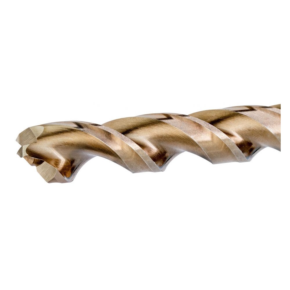 Высококачественная быстрорежущая сталь с 5% примесью кобальта Золотистое оксидное покрытие Точное сверление без увода сверла в сторону Три фрезерованные поверхности хвостовика |