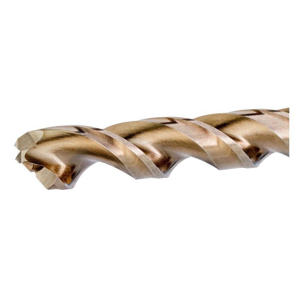 Кобальтовый сплав Золотистое оксидное покрытие Высокий ресурс Точное сверление без увода сверла Три фрезерованные поверхности хвостовика |
