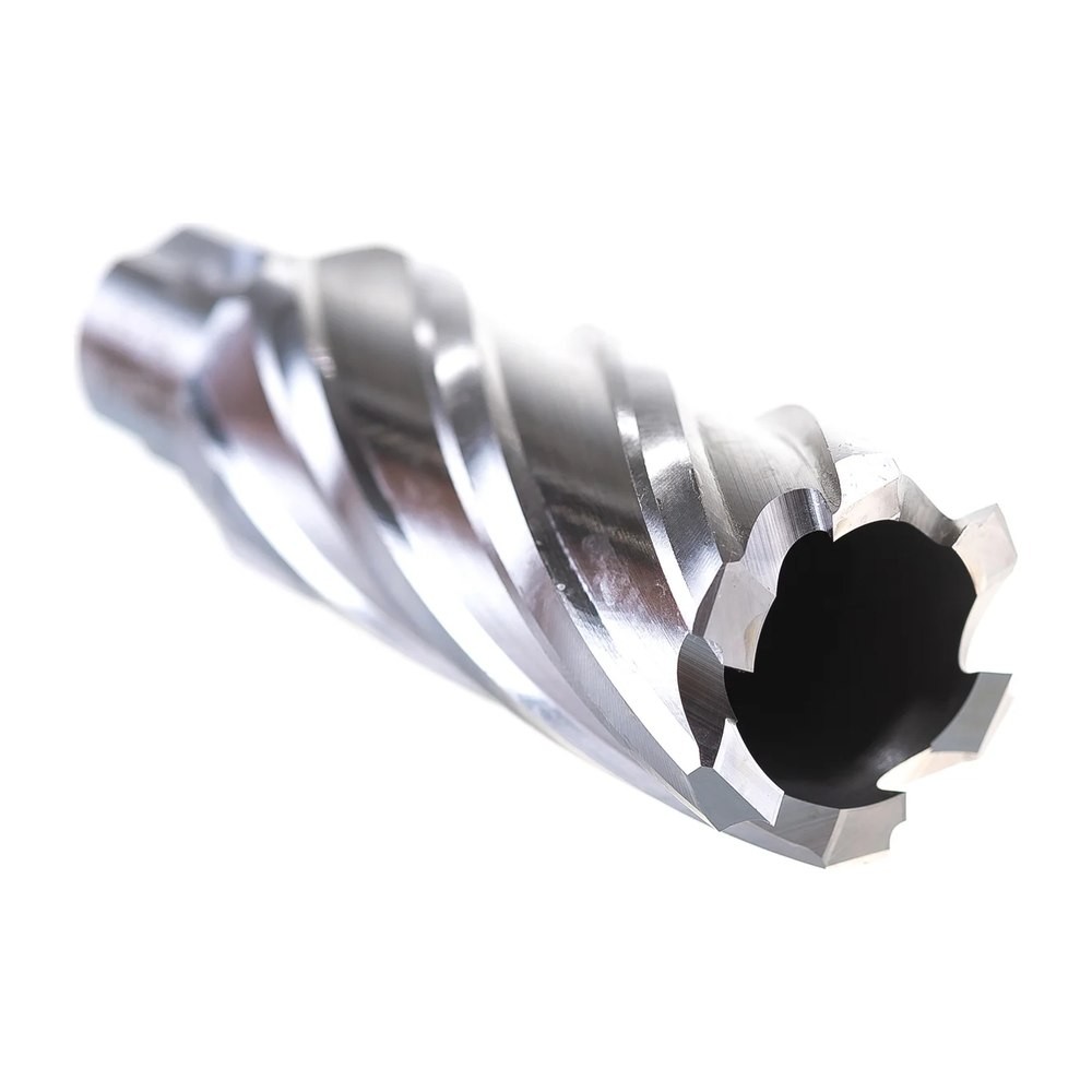 Изготовлено из быстрорежущей стали Оснащено хвостовиком ONE-TOUCH Подходит для всех типов магнитных сверлильных станков Высокая скорость работы Повышенная скорость подачи Гладкое отверстие на входе и выходе Сверление производится точно и без шума |